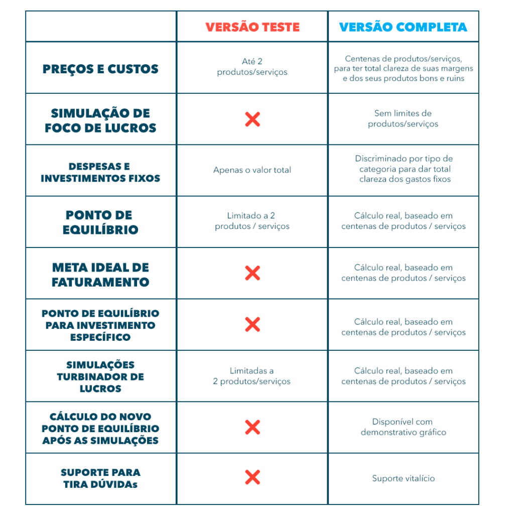 Você coloca na planilha os números da sua empresa e ela mostra, exatamente, o que fazer para aumentar seu lucro.