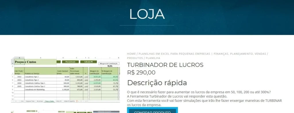 Garanta AQUI seu acesso à Planilha TURBINADOR DE LUCRO COMPLETA + Tutorial em Vídeo + Suporte Vitalício + Desconto Especial!