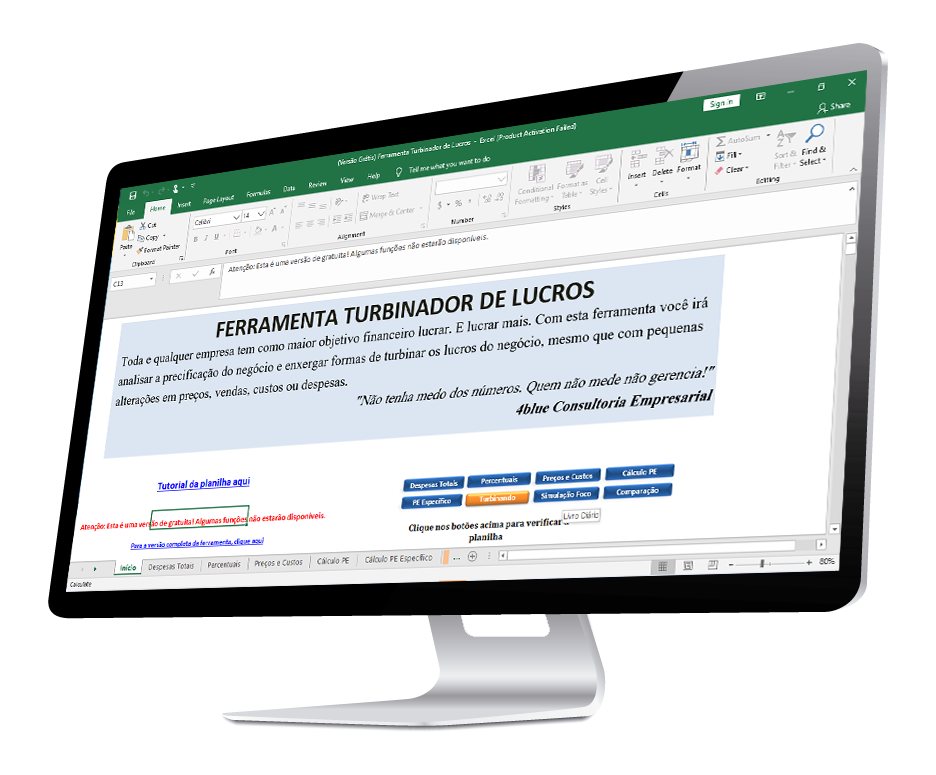 Você coloca na planilha os números da sua empresa e ela mostra, exatamente, o que fazer para aumentar seu lucro.