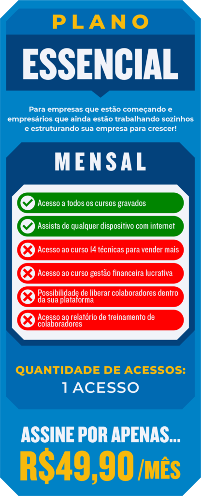Mas você não precisa gastar tudo isso. Na 4talents, o investimento para transformar seu negócio é muito menor. Você pode ter acesso imediato a todos os cursos com uma assinatura mensal, da mesma forma que você fala Netflix, por exemplo!